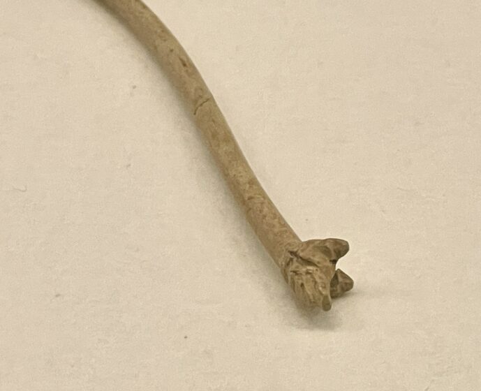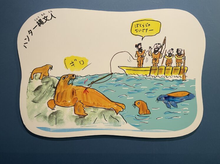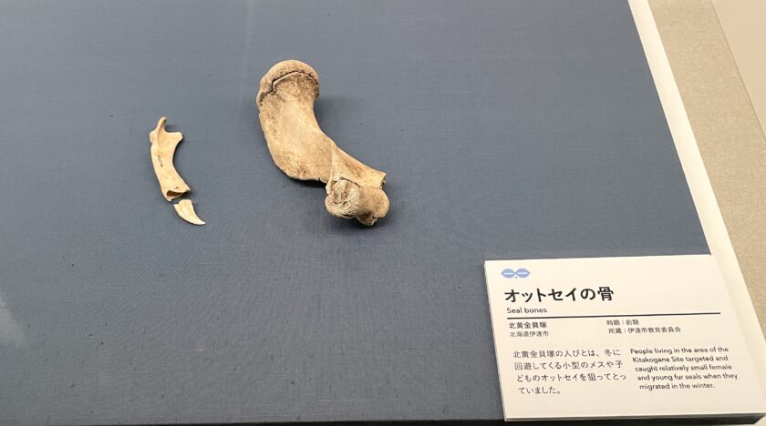 こちらはなんと“オットセイの骨”です。縄文人は、オットセイを食べていたと考えられています。丸木舟を作って、漁に出ていたのですね。