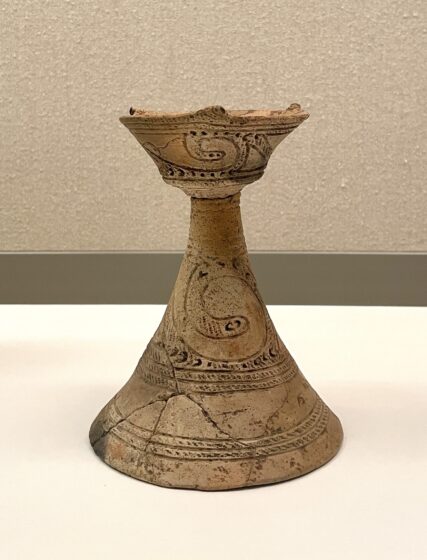後期になると、コンパクトな土器も作られるようになりました。「燭台形台土器」と呼ばれる、燭台のような形が特徴的です。