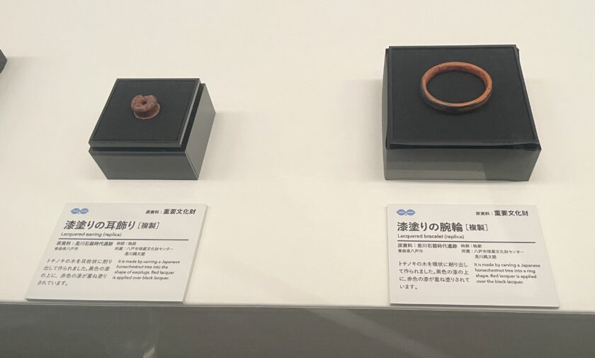 こちらは、「漆塗りの耳飾り」や「腕輪」です。