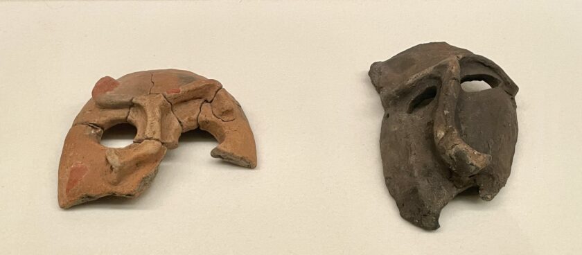 理由ははっきりしていませんが、鼻が曲がった仮面が見つかっています。